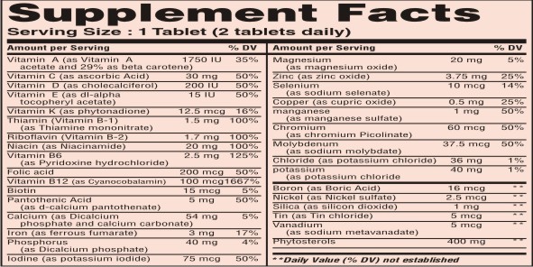 A senior's vitamin is a dietary supplement specially intended for people over age 50 that provides one or more necessary vitamins, minerals or other nutrients. A healthy diet based on whole grains, fruits, vegetables, healthy fats, etc. should provide adequate amounts of most nutrients for seniors. However, seniors have special nutritional needs and may require additional supplementation for good health. Individuals over age 50 should choose an iron-free multivitamin, as excess iron has been linked to heart disease. People 50+ years of age also have an increased need for calcium (1200 mg/daily), vitamin D (400-600 IU; 10-15 mcg), and B-complex vitamins. Talk to your doctor about choosing the right supplements for good health.